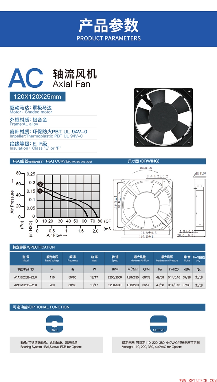 AC交流12025 120*120*25MM轴流风机 铝合金外框
