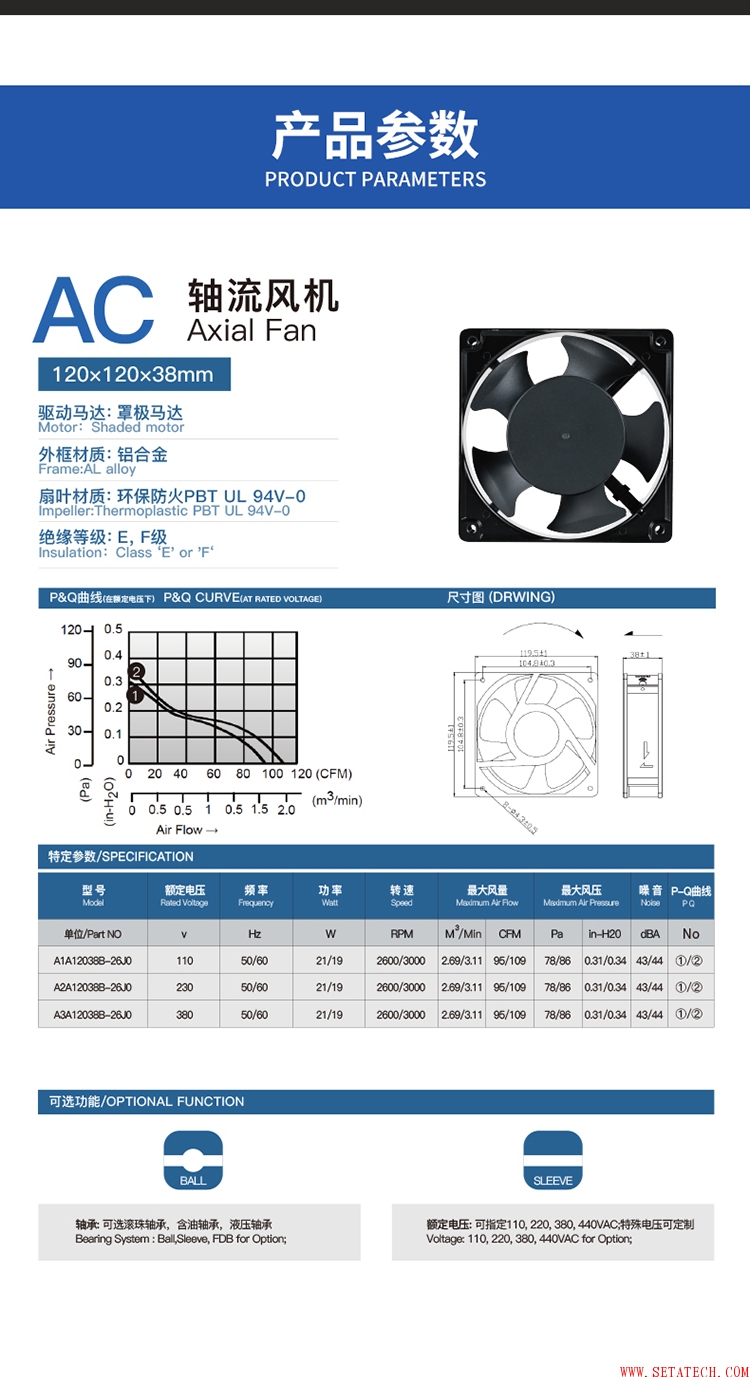 AC交流12038 120*120*25MM轴流风机 铝合金外框