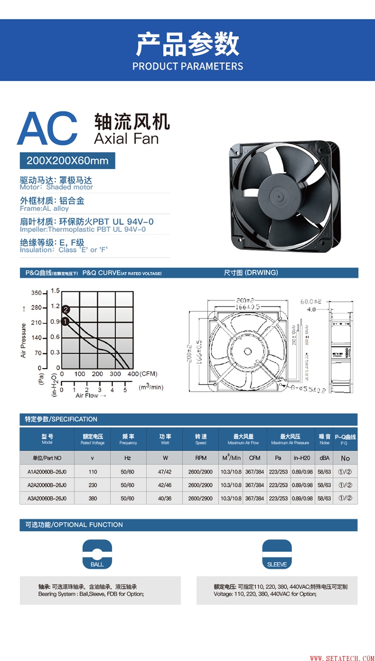 AC交流20060 200*200*60MM轴流风机 铝合金外框