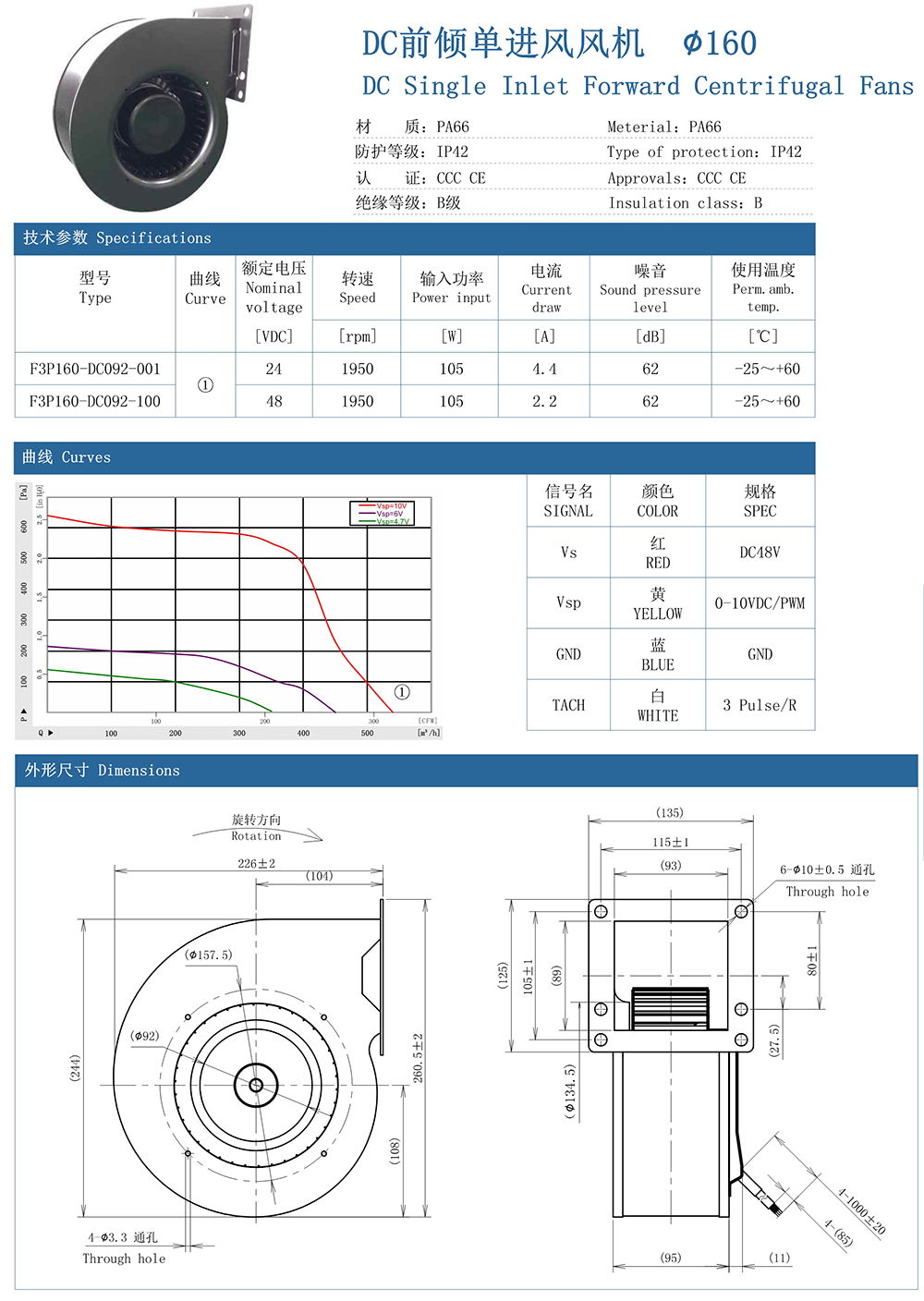 DC前倾单进风风机Φ160-3