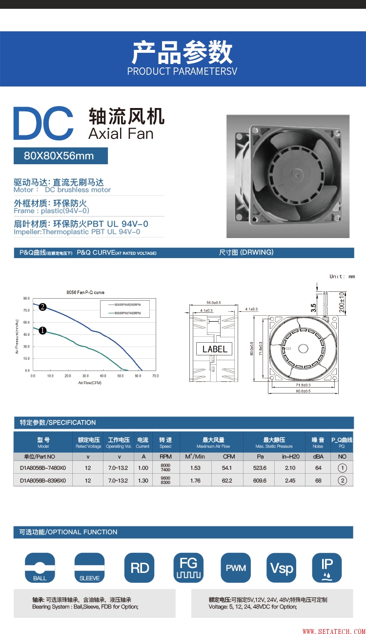 DC8056直流80*80*56MM轴流风扇