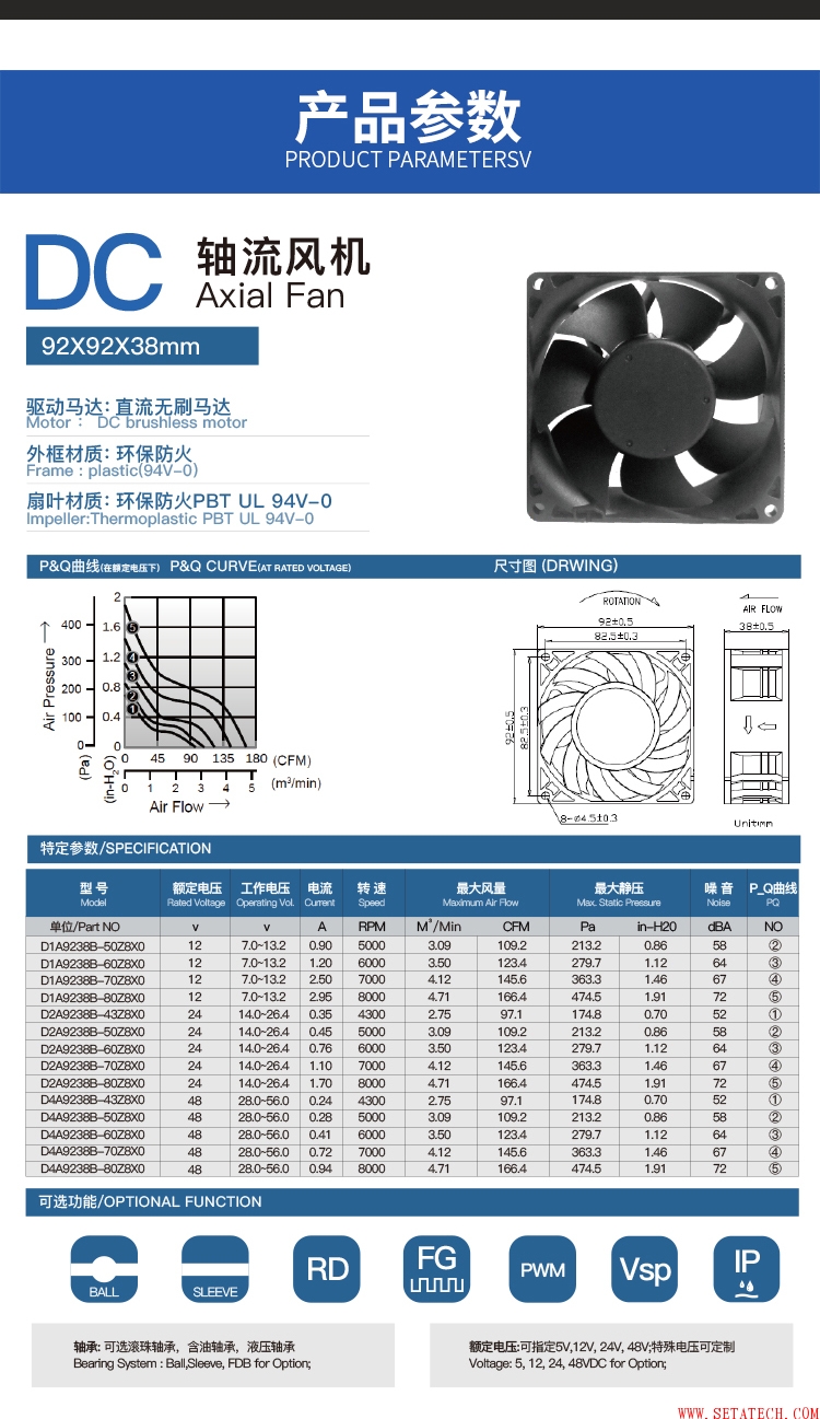 DC9238直流90*90*38MM ; 92*92*38MM 轴流风扇