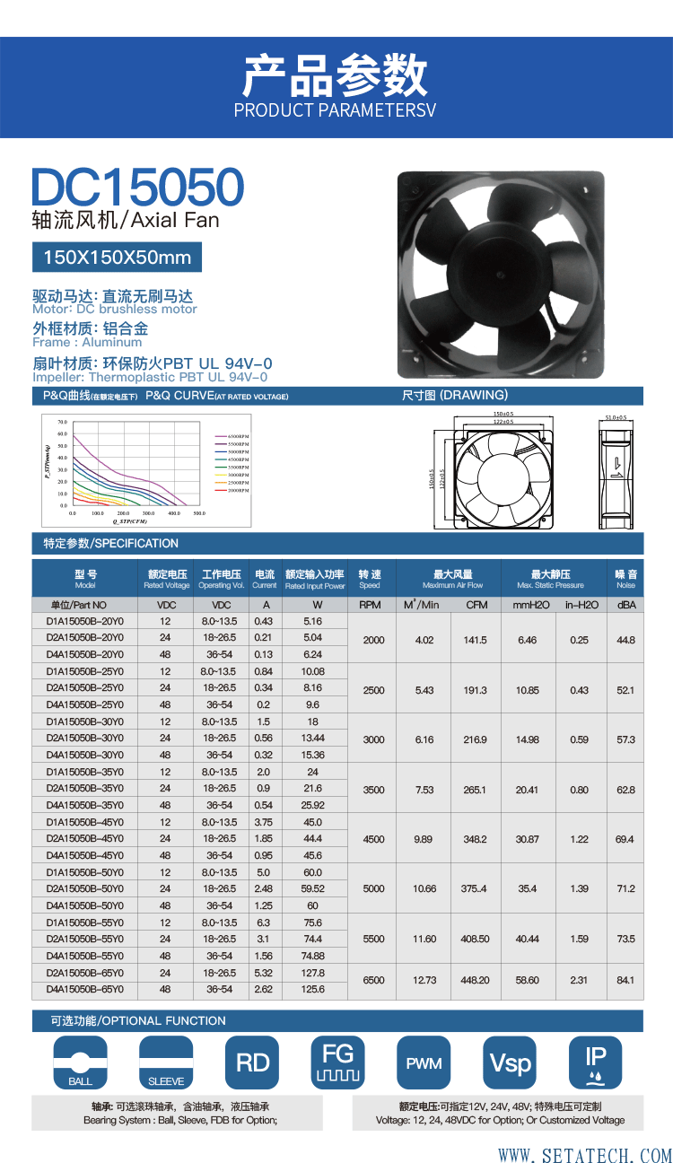 DC15050直流 150*150*50MM轴流风机 铝合金框