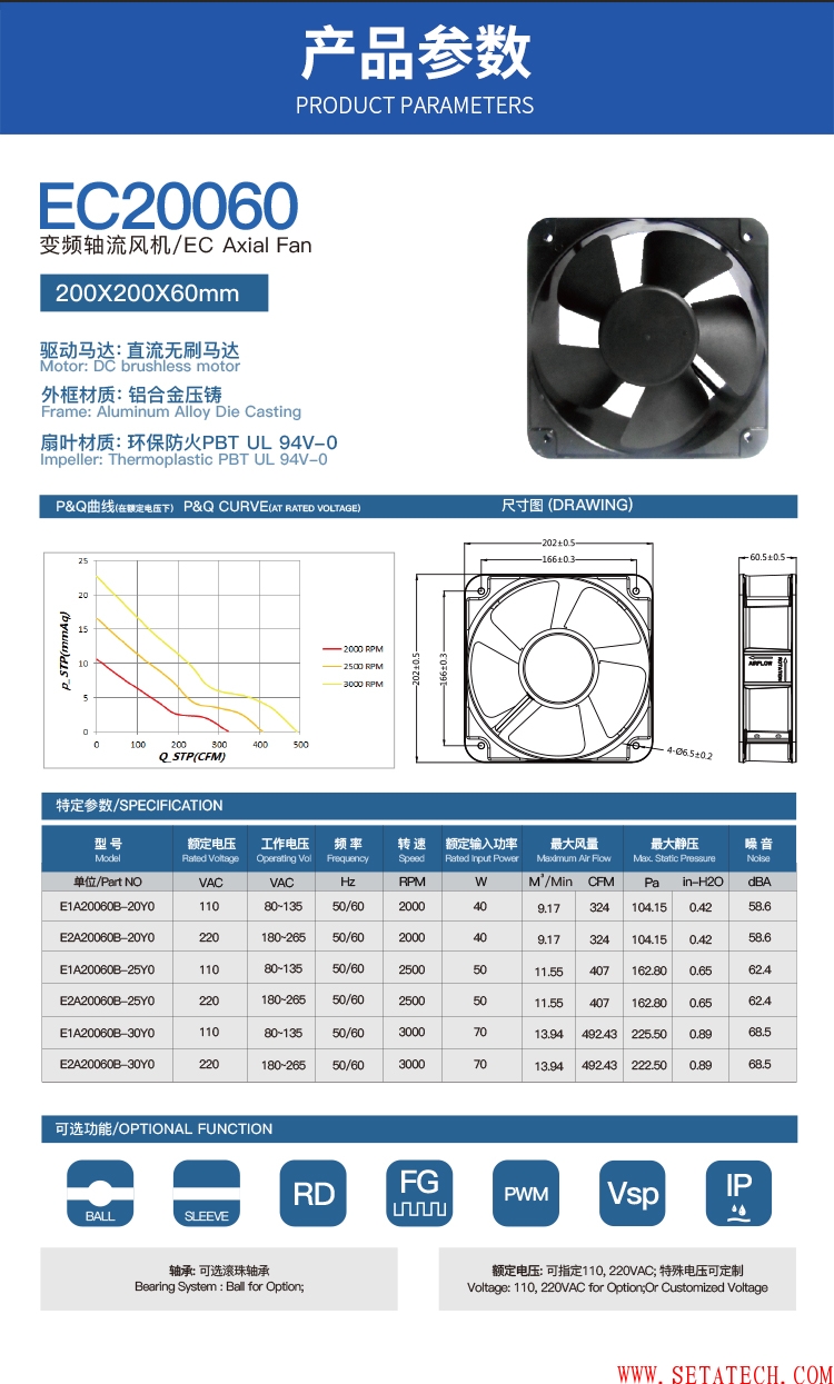 EC变频交流110V220V 20060散热风扇200*200*60MM铝框轴流风机