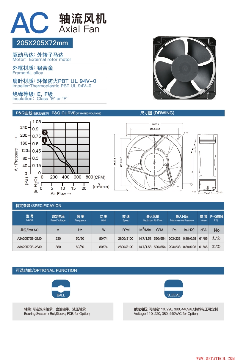 AC20572交流205*205*72MM轴流风机 20572铝框外转子轴流风机