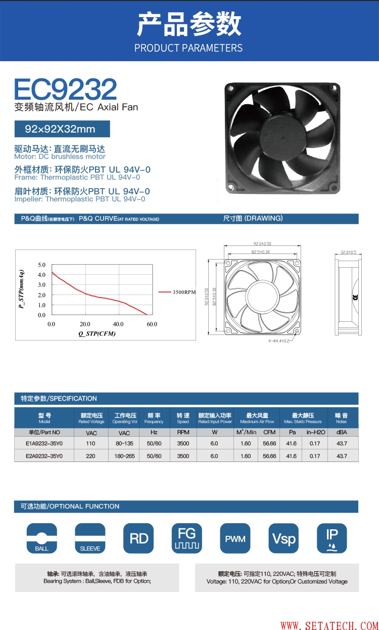 EC变频交流110V220V 9232散热风扇 92*92*32MM轴流风机